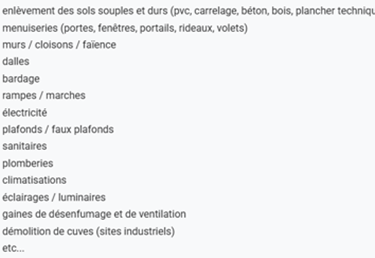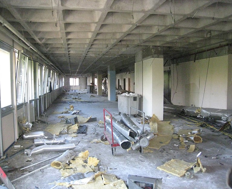 STC ENVIRONNEMENT procède ainsi au curage partiel ou intégral de tout type de bâtiments (immeuble, maison, appartement, bureaux, centre commerciaux, magasins, restaurants, espaces privés, etc…). Après repérage et inventaire des éléments non structurels à déposer, nous remettons vos structures à nu en respectant l’ordre de dépose : mobiliers, puis cloisons, habillages périphériques, plafonds, réseaux techniques et enfin revêtements de sols. De plus en plus, nous pratiquons des stockages provisoires sur chaque chantier, des éléments déposés, dans le but pour la Maitrise d’ouvrage, de les réemployer à la suite de notre intervention.